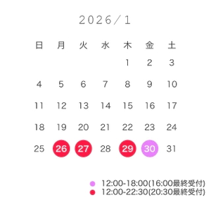 次回は明日27日(火)12:00〜20:30最終受付で出勤させて頂きます✨
